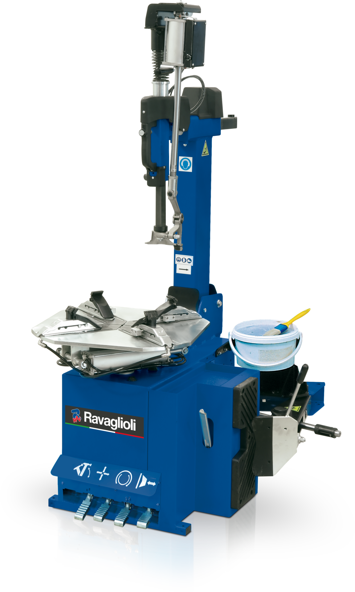 Version mit eingebauter Tubeless-Reifenfüllanlage. Die Vorrichtung wird über ein einziges Steuerpedal mit 2 Positionen betätigt.