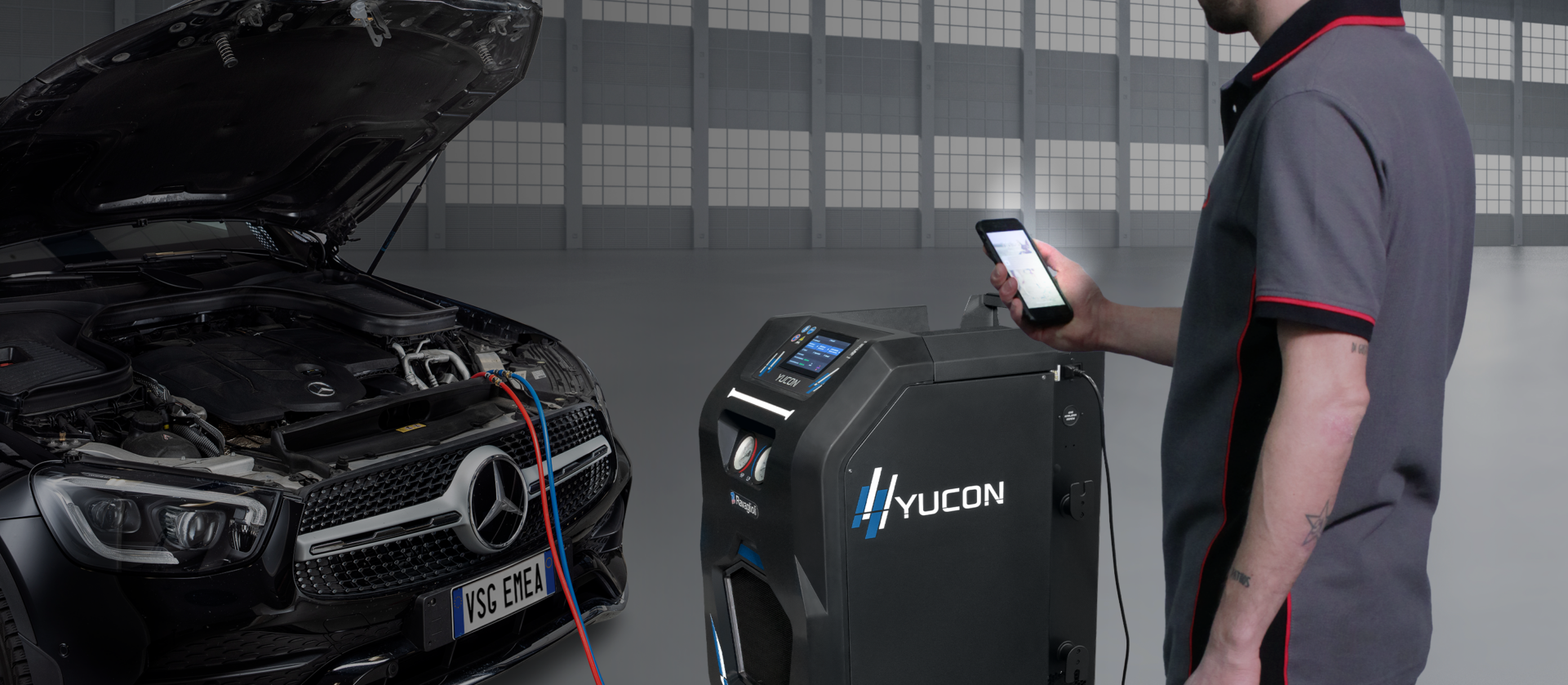 Yucon es una estación totalmente automática para recuperar, reciclar y recargar los gases refrigerantes de los sistemas de aire acondicionado de los automóviles.