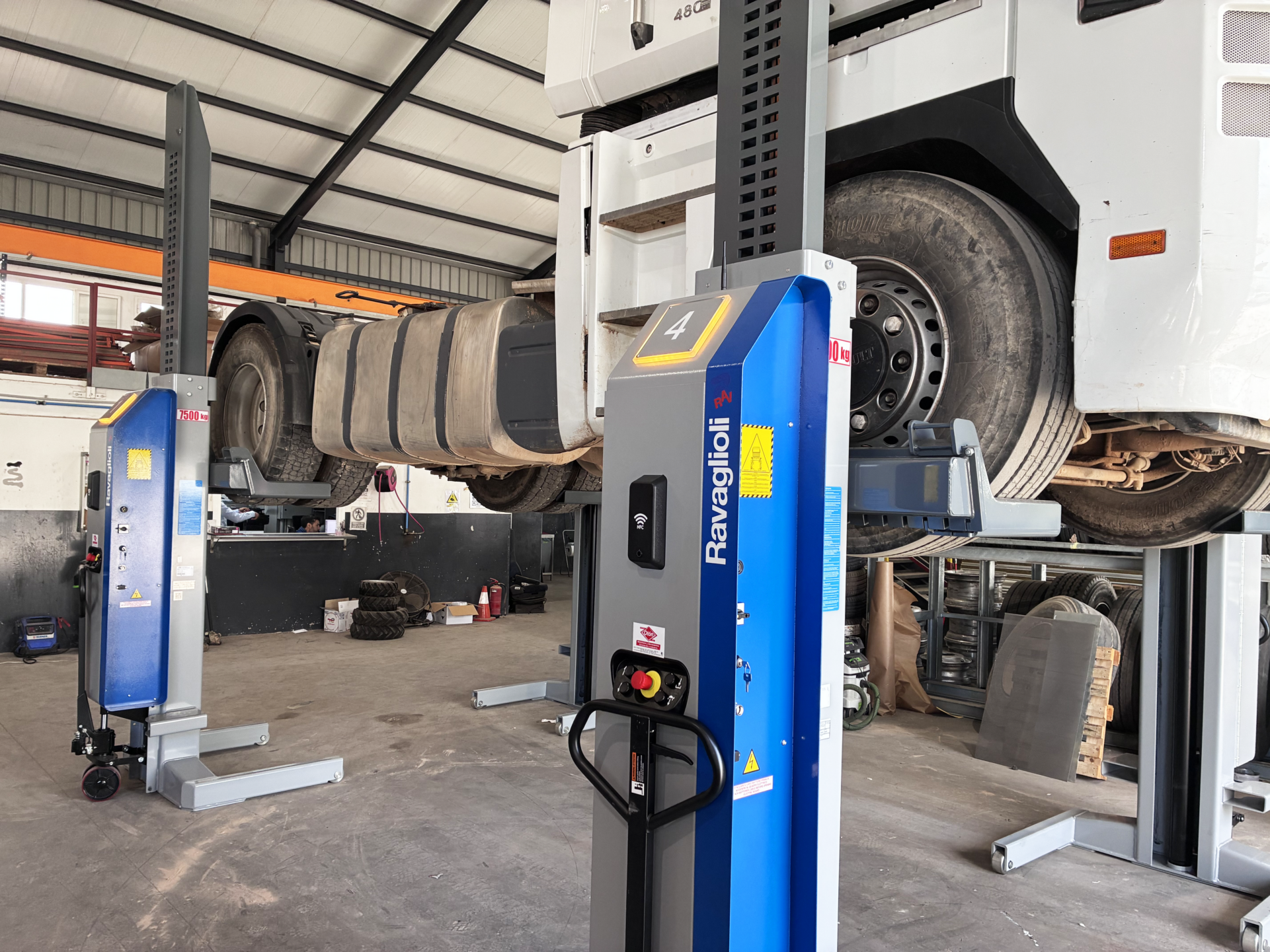 - Chariot de déplacement avec timon hydraulique pour une meilleure mobilité de la colonne lors de sa manipulation, de sa mise en place sous le véhicule et de son stationnement.